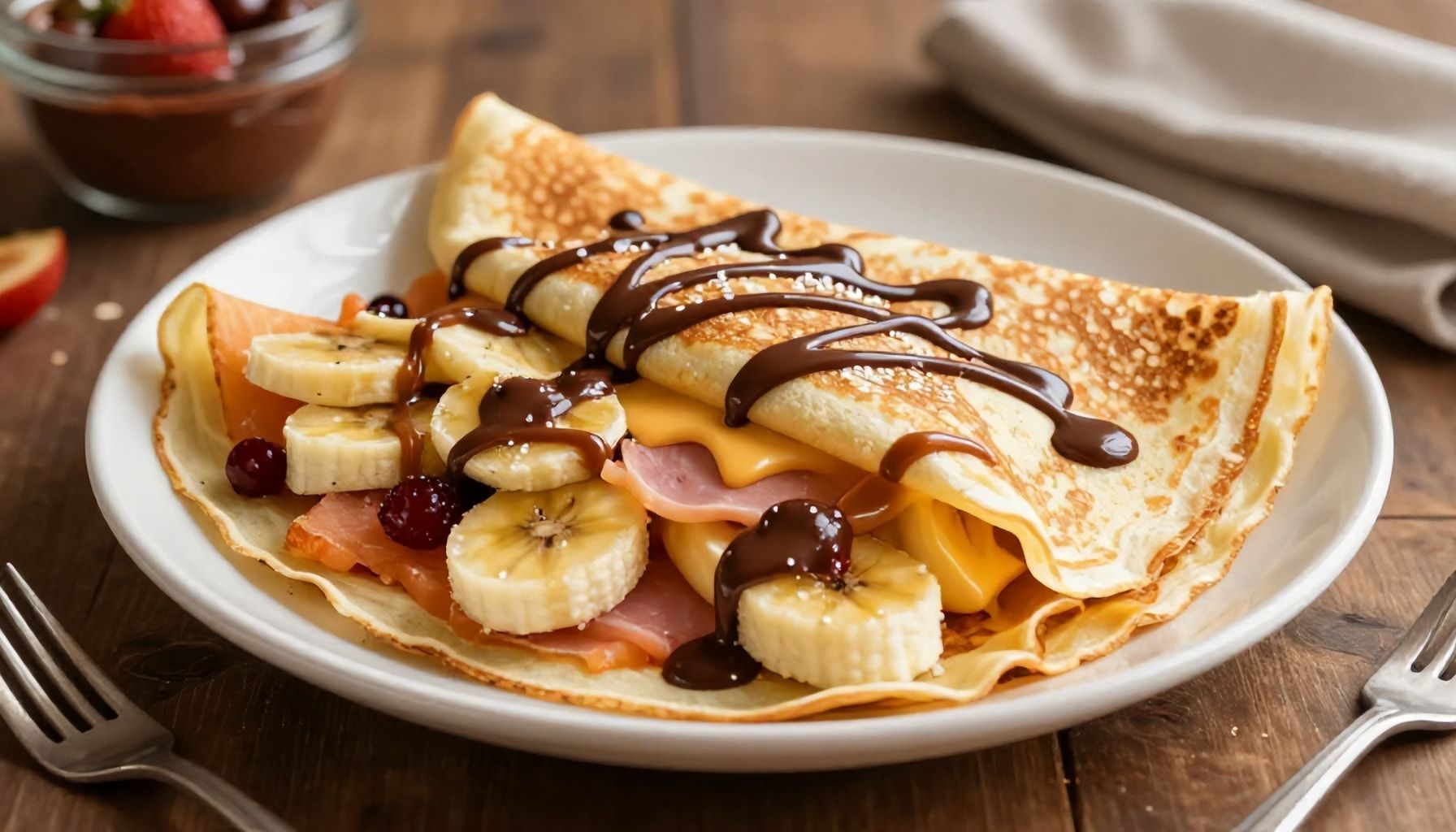 Una vez que domines la técnica, experimenta con rellenos. Desde el clásico queso y jamón hasta opciones más audaces como espinacas y queso de cabra. Las crepas también son perfectas para el desayuno, rellenas de frutas frescas y un chorrito de miel.